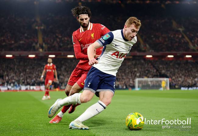토트넘 훗스퍼는 7일 오전 5시(한국시간) 영국 리버풀에 위치한 안필드에서 열린 2024-25시즌 잉글랜드 풋볼리그컵(EFL컵) 4강 2차전에서 리버풀과 맞대결을 펼치고 있다. 현재 1-0의 스코어로 리버풀이 리드하고 있다.