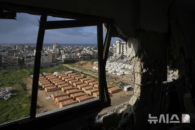 [자발리아=AP/뉴시스] 이스라엘의 공습과 지상 공격으로 파괴된 가자지구 자발리아에 6일(현지 시간) 팔레스타인 주민들을 위한 천막촌이 마련돼 있다. 2025.02.07.