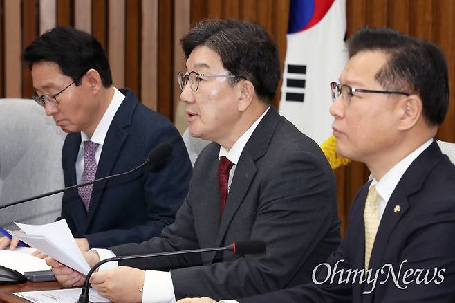 | ▲ 권성동 국민의힘 원내대표가 7일 오전 서울 여의도 국회에서 열린 원내대책회의에서 발언하고 있다. |