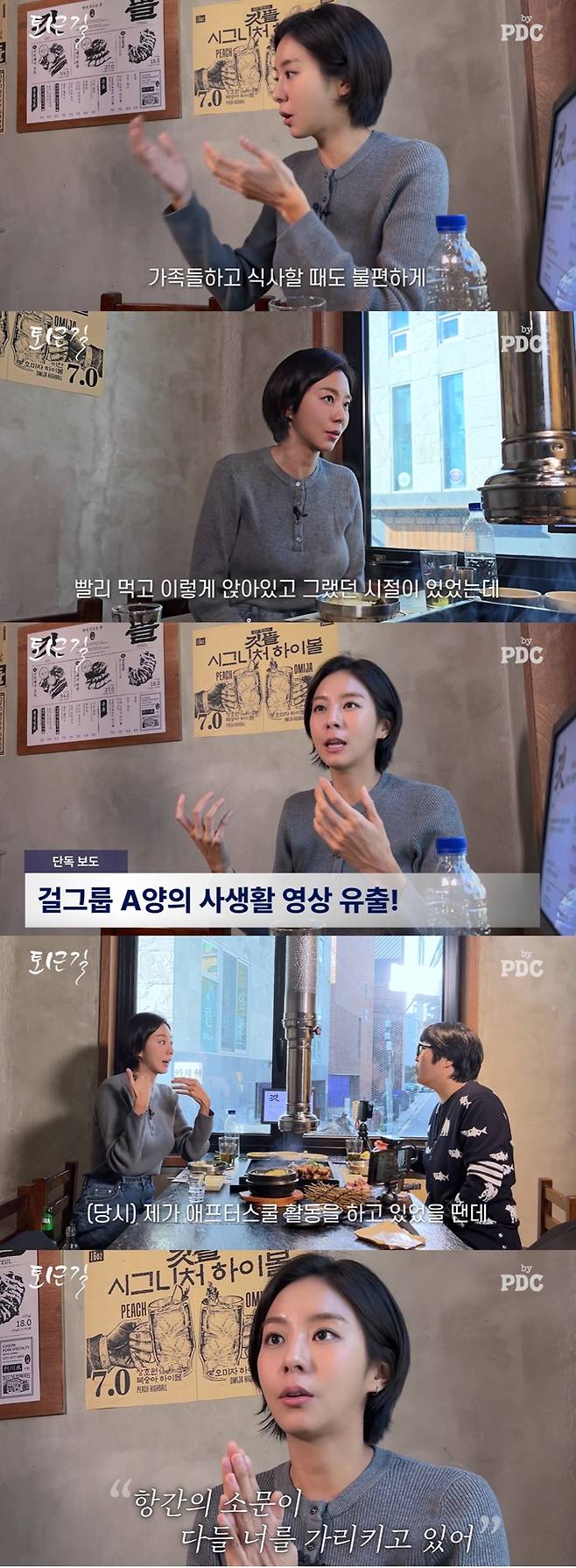 유이는 "그때 당시 1면에 걸그룹 A의 야한 영상이 떴다는 기사가 나왔다. 제가 애프터스쿨 활동했던 때다"라며 "아직도 안 읹혀진다. 대표님이 어린 친구가 상처받지 않게 어떻게든 돌려 말하신 거다. '난 널 믿어. 그리고 네가 이런 영상이 안 찍혔을 거라고 믿지만 지금 소문이 다 너에게 포커스를 두고 있다. 이 사진을 보고 맞으면 맞다, 아니면 아니다라고 이야기해줘'라고 하셨다"라며 과거를 회상했다.