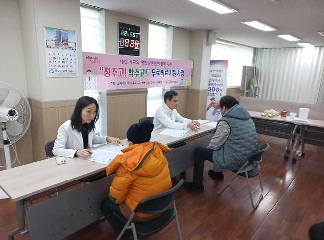 특히 거동이 불편하여 병원에 내원하기 힘든 저소득층을 위해 의사가 5개 동(용문, 괴정, 갈마1·2동, 월평2동) 행정복지센터를 직접 방문하여 진료함으로써 저소득층 100명에게 5회에 걸쳐 무료로 양방 및 한방 서비스(침 치료, 뜸, 건강 상담 등)를 제공하며 근골격계 환자(척추, 관절) 등 재활이 필요한 대상을 중점적으로 담당한다.