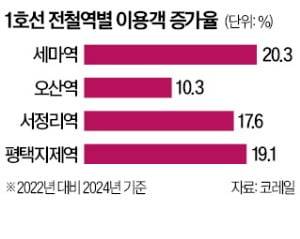 과거 온양온천행 승객들이 주를 이뤘던 1호선의 진화에서 지역 경제 활성화의 해법을 엿볼 수 있다는 분석도 나온다. 김영민 산업연구원 부연구위원은 “철도 등 교통망을 따라 기업이 자리잡고, 양질의 일자리가 창출되자 주거 환경이 개선되며 인재와 기업이 몰리는 선순환 구조가 형성된 것”이라고 말했다.