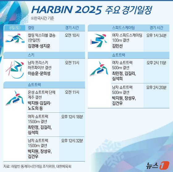 [그래픽] 2025 하얼빈 동계아시안게임 주요 경기 일정(8일)