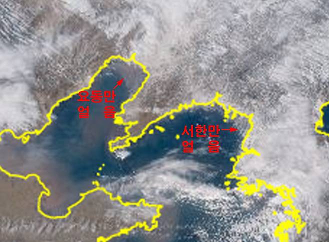 기상청 위탁관측기관 고려대기환경연구소는 8일 미국 해양대기청(NOAA) 위성 영상을 통해 북한 서한만 일대가 얼어붙어 있는 모습을 확인했다고 밝혔습니다.