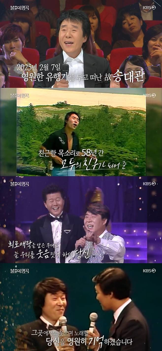 '불후의 명곡'이 수많은 유행곡을 탄생시킨 故 송대관을 추모했다.