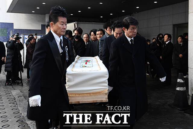 [더팩트ㅣ서예원 기자] 트로트 가수 고 송대관의 발인이 9일 오전 서울 종로구 서울대학교병원 장례식장에서 엄수되고 있다. 향년 78세.