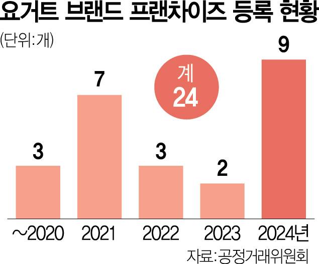9일 공정거래위원회에 따르면 국내에 등록된 요거트 디저트 브랜드는 총 24개다. 이중 21개 브랜드가 2021년 이후 생겼으며 특히 지난해에만 9개 브랜드가 새로 등장했다. 2020년 설립된 ‘요거트 아이스크림의 정석(요아정)’이 젊은 세대 사이에서 큰 인기를 끌면서 이와 유사한 요거트 디저트 브랜드들이 대거 생긴 것이다.
