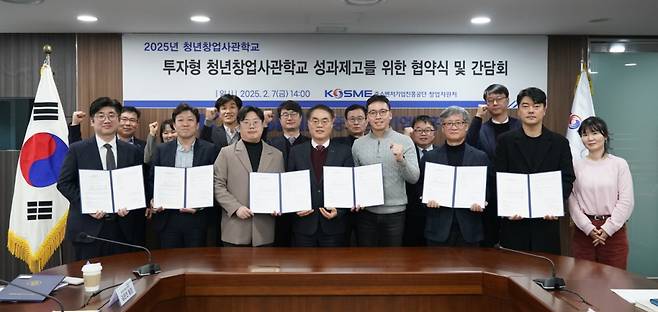 중진공은 지난 7일 서울 양천구 서울청년창업사관학교에서 6개 AC들과 '2025년 청년창업사관학교 투자형 운영사 협약식'을 개최했다.