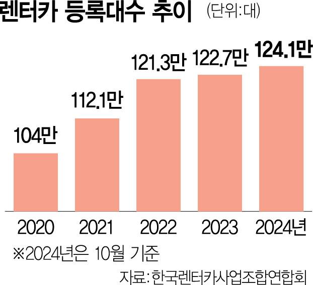 렌터카 시장은 쑥쑥 성장하는 추세다. 한국렌터카사업조합연합회에 따르면 국내 렌터카 등록 대수는 2020년 103만 9889대에서 지난해 124만 1453대로 19.4% 늘었다.