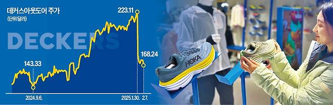인기 신발 브랜드인 ‘어그(UGG)’ ‘호카(HOKA)’로 급부상한 데커스아웃도어 주가가 이달 들어 20% 넘게 급락했다. 호실적에도 주가가 정반대로 움직이는 상황이다.