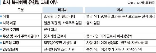 A. 9일 PKF서현회계법인에 따르면 복리후생비는 회사가 직원들 복지를 위해 쓰는 것이지만 세법에서 정한 규정을 초과하거나 근로와 밀접한 연관성이 있을 경우엔 근로소득으로 간주해 소득세 과세 대상에 편입된다.