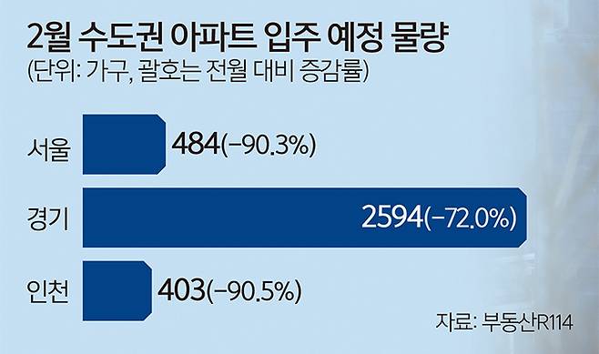 직방 관계자는 “2월 입주물량 감소는 일시적인 현상”이라며 “3월은 수도권 입주물량이 2월 대비 75% 다시 증가하면서 2월 물량 감소에 따른 여파는 작을 것”이라고 내다봤다. 윤지해 부동산R114 수석연구원도 “3월과 4월에 입주물량이 확 줄어드는 건 아니다”고 말했다.