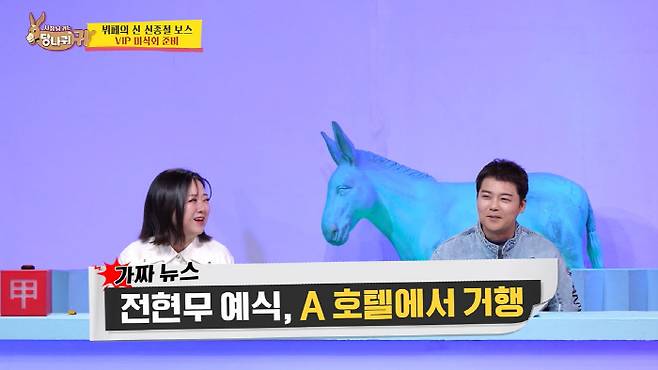 이후 '뷔페의 신' 신종철 총주방장이 등장, 그때 박명수는 "전현무 씨 다음 달에 좋은 소식 있지 않나. 장소는 여기 어떠냐"라며 신종철 총주방의 호텔을 추천하는 등 장난을 멈추지 않았다.