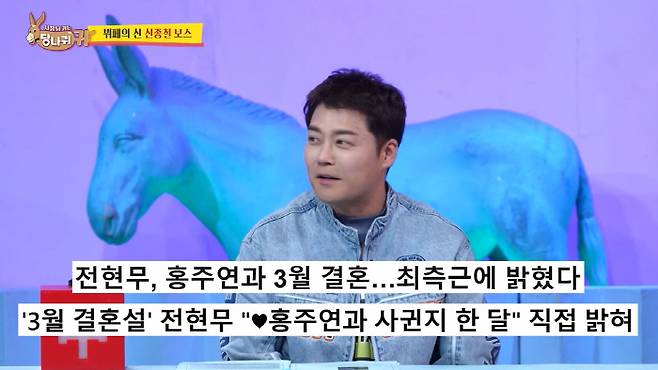 9일 방송된 KBS2 '사장님 귀는 당나귀 귀'에서 전현무가 홍주연 아나운서와의 열애설, 결혼설에 대해 해명하는 모습이 그러졌다.