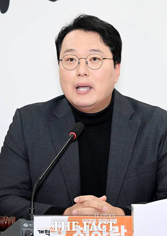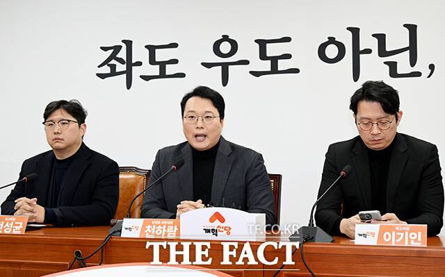 천하람 개혁신당 원내대표 겸 당대표 권한대행이 10일 오전 서울 여의도 국회에서 열린 최고위원회의에 참석해 모두발언을 하고 있다.
