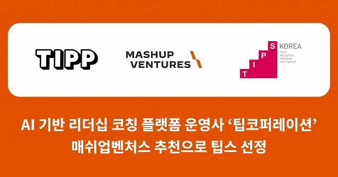 AI(인공지능) 기반 리더십 코칭 플랫폼 '팁' 운영사 팁코퍼레이션이 매쉬업벤처스의 추천으로 중소벤처기업부 팁스(TIPS) 프로그램에 선정됐다고 10일 밝혔다.