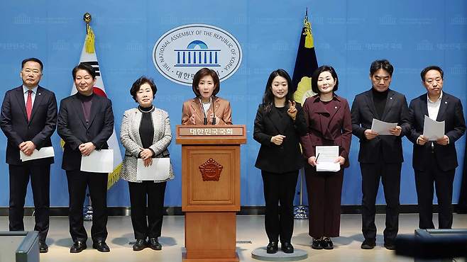 국민의힘 나경원·강승규·권영진·김희정·이성권 ·신성범·조배숙 의원은 기자회견을 열고 "민주당이 22대 국회에서 국회의장과 법사위· 운영위·예결위원장을 차지해 '의회 독재'를 계속하고 있다"며 "제1당이 국회의장을 가져갔으면 법사위는 제2당에 양보해 균형을 맞춰야 한다"고 주장했습니다.
