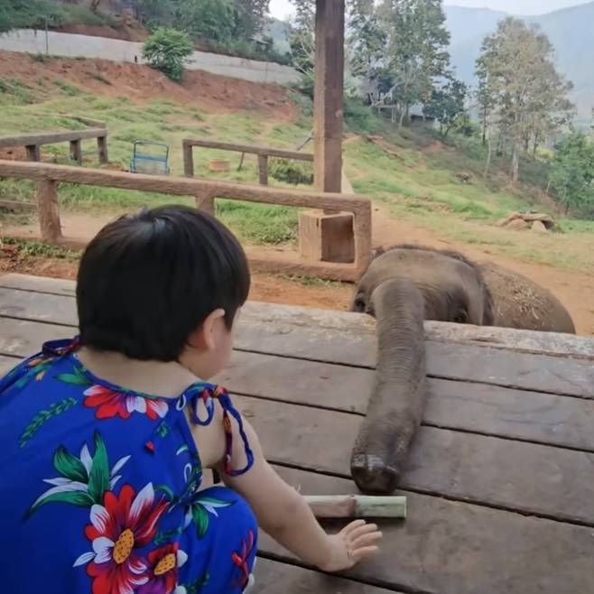 3살이 된 준범이는 홍현희와 함께 코끼리에게 바나나를 주더니 다음 사진과 영상에서는 혼자 코끼리에게 나가가는 용기 있는 모습을 보였다.