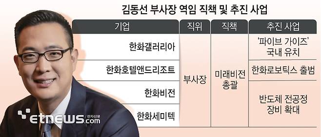새 이름과 함께 김동선 부사장이 미래비전총괄로 가세했다. 한화세미텍에 따르면 김 부사장은 무보수로 일하며 회사 성장에 기여할 방침이다.