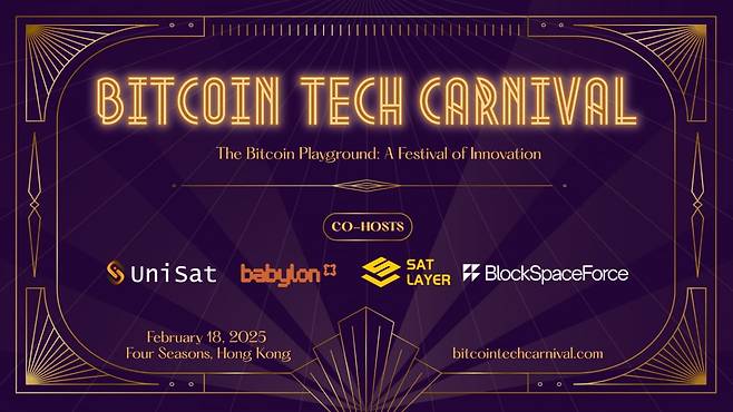 비트코인 테크 카니발은 블록스페이스포스와 월렛 제공업체 유니샛, 비트코인 스테이킹 프토토콜인 바빌론 등이 공동 주최하는 가상자산 컨퍼런스다. 세계 최대 규모의 가상자산 컨퍼런스 '컨센서스 홍콩' 개최일인 이달 18일에 맞춰 행사가 진행된다. 블록스페이스포스 측은 "(비트코인 테크 카니발은) 비트코인(BTC)에 초점을 맞춘 컨퍼런스로 컨센서스 홍콩을 보완하는 역할"이라고 설명했다.