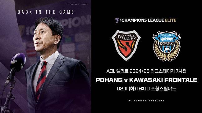 포항스틸러스는 오는 11일 오후 7시 포항 스틸야드에서 가와사키 프론탈레와 AFC 챔피언스리그 엘리트 2024/25(이하 ACLE) 리그스테이지 7차전 홈경기를 펼친다.