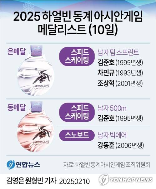 [그래픽] 2025 하얼빈 동계 아시안게임 메달리스트 (10일)