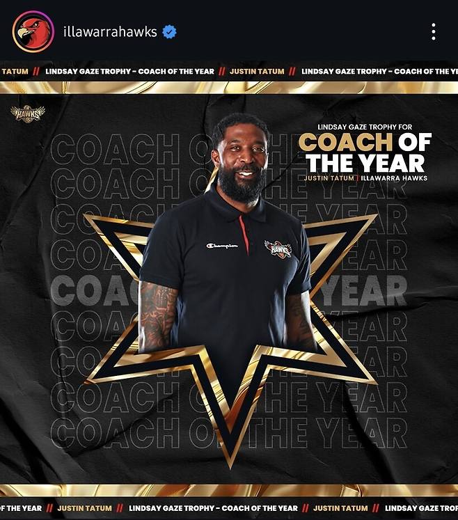 NBL은 10일 공식 홈페이지를 통해 2024-2025시즌 시상식 결과를 발표했다. 일라와라 호크스를 20승 9패 정규리그 우승으로 이끈 저스틴 테이텀 감독은 올해의 감독상을 차지했다.