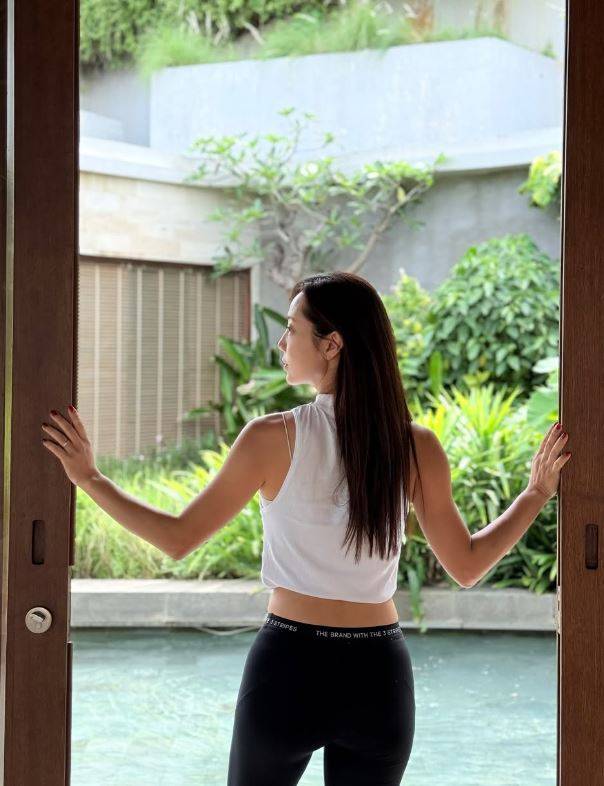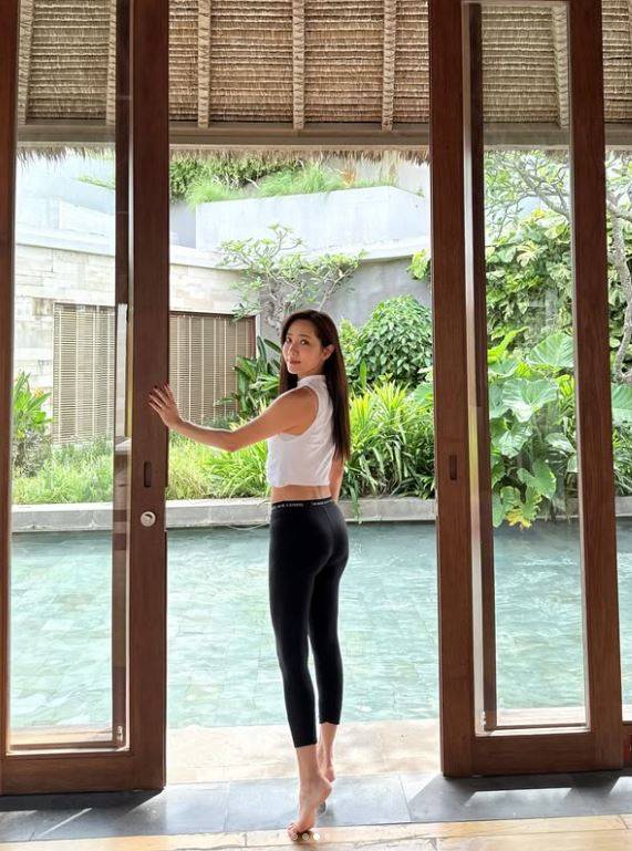또 다른 사진에서는 휴가 중 요가에 매진한 모습도 공개했다. 특히 레깅스를 입고 뒤태를 자랑하기도 했다. 탄탄한 '애플힙'이 시선을 사로잡았다.