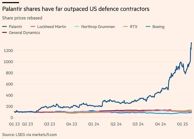 팔란티어의 로비 예산은 2015년 100만 달러에서 지난해 580만 달러까지 확대됐다. 전통적인 방산업체인 록히드마틴(1,240만 달러), 노스럽 그러먼(880만 달러)보다 낮지만, 훨씬 더 가파른 증가세다.