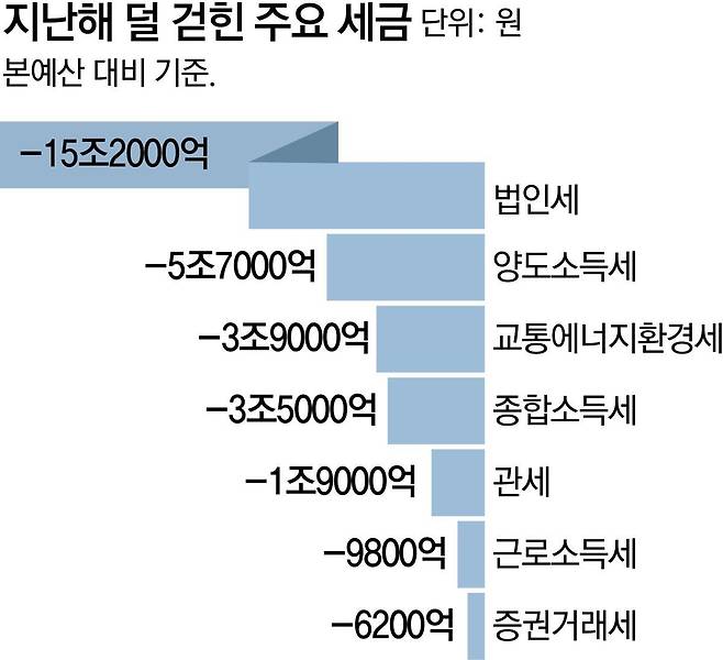 법인세 15조 덜 걷혀 세수 감소… 지방교부세 감액 등 못쓴 예산 20조
