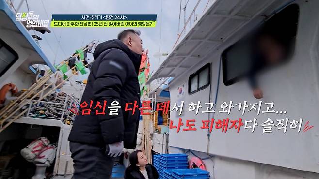 제주도에서 일하고 있는 전남편을 찾아가기 전, 백호 탐정단은 전남편과 재혼했던 여성의 어머니를 만났다. 그녀는 "전남편의 큰아들은 내 딸(재혼한 아내)과의 사이에서 태어난 아이가 맞다"는 확인으로 탐정단에 도움을 줬다. 결국 의뢰인이 찾는 아들의 행방은 묘연한 가운데, 백호 탐정단은 전남편을 직접 만나기 위해 제주도로 향했다. 현지에 도착해 여러 항구를 돌아가며 탐문을 이어간 끝에, 백호 탐정단은 겨우 전남편을 만났다. 그러나 전남편은 의뢰인의 이름을 듣자 "모릅니다. 왜 나를 걸고넘어지냐. 그 여자 말만 들으면 짜증만 난다"며 자리를 피했다.