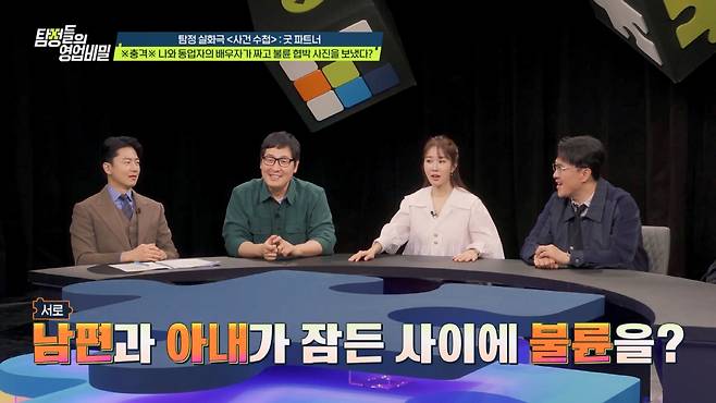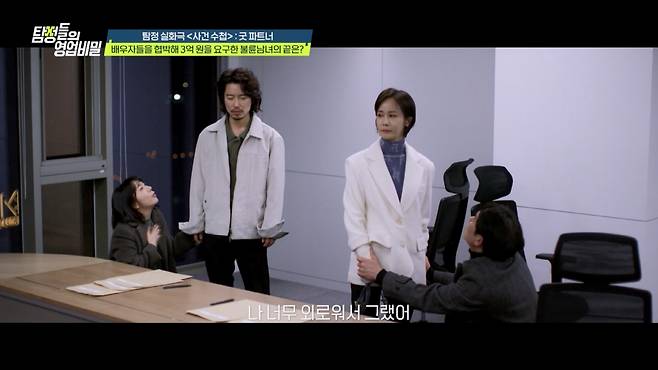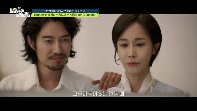 한편, 실화 재구성 코너 '사건 수첩-굿 파트너'에는 '일식 대가' 정호영 셰프가 함께했다. 사연 속 의뢰인은 "아내와 아내의 동업자가 불륜 사이인 것 같다"고 의심하며 불륜의 증거를 부탁했다. 아내는 동업자 남성과 제품 개발로 밤낮없이 붙어 있었고, 사업이 성공하자 아내는 더욱 바빠졌다. 반면 같은 시기 의뢰인은 사업 실패로 육아와 집안일을 도맡아 하고 있었다. 때문에 아내의 불륜에 대한 의심도 자격지심인가 싶어, 아내에게 말도 하지 못했다. 의심이 커져가던 가운데, 아내가 침대에서 잠결에 남편이 아닌 동업자의 이름을 부르자 의뢰인은 더욱 고통받았다. 김풍은 "직장 내 불륜이 많다고 하더라. 배우자보다 더 자주 보고 자연스럽게 가까워지니까..."라며 탄식했다.