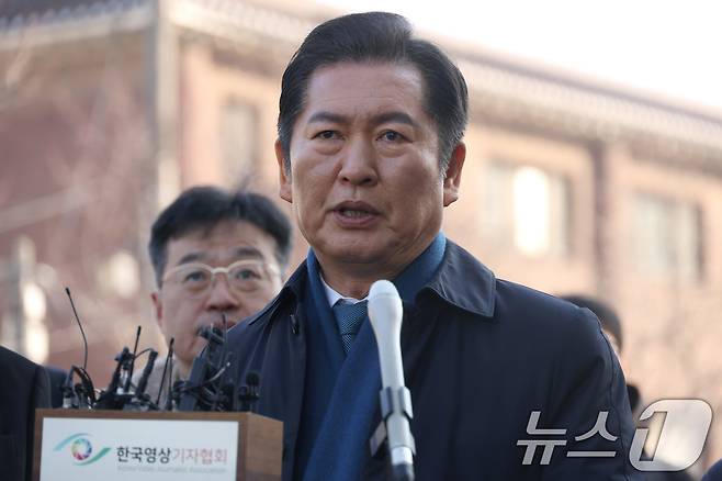 (서울=뉴스1) 사진공동취재단 = 정청래 국회 탄핵소추위원장이 11일 오전 서울 종로구 헌법재판소에서 열린 윤석열 대통령 탄핵 심판 7차 변론기일에 출석해 입장을 밝히고 있다. 2025.2.11/뉴스1
