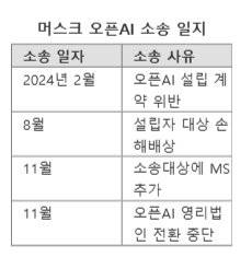 머스크는 지난해 2월 오픈AI를 상대로 첫 소송을 냈다. 이 소송을 지난해 6월 취하한 머스크는 지난해 8월 올트먼 등 공동 설립자들을 상대로 손해배상 청구 소송을 다시 제기했다. 이후 머스크는 지난해 11월 캘리포니아 북부 연방법원에 기존 소송 대상이었던 올트먼 CEO와 함께 마이크로소프트(MS)를 피고로 추가한 새로운 소장을 제출했다. 같은 달 말에 머스크는 오픈AI의 영리 법인 전환을 중단시켜달라고 요청하는 가처분 신청을 연방법원에 냈다.