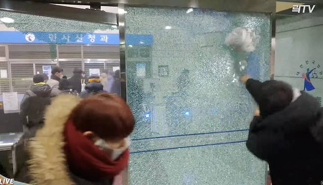 | ▲ 윤석열 대통령이 19일 새벽 3시경 내란 우두머리 및 직권남용 권리행사 방해 혐의로 구속되자, 서울 마포구 서울서부지방법원(서부지법) 주변에서 시위를 벌이던 지지자들이 법원에 난입했다. 이들은 진입 과정에서 경찰을 폭행하고 건물 외벽 및 유리창을 부수고 들어가 출입문, 각종 집기 등을 부쉈다. |