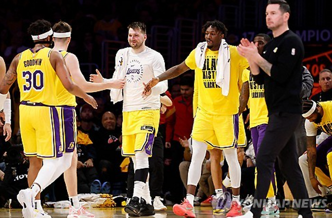 [NBA] 르브론 옆 돈치치, 14P 5R 4A로 성공적인 데뷔 경기…레이커스도 유타 상대로 대승