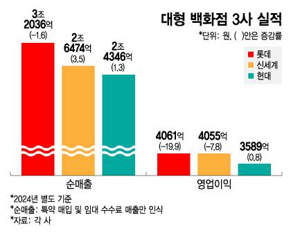 11일 관련업계에 따르면 지난해 국내 3대 백화점 업체 중 순매출 1위는 3조2036억원을 기록한 롯데백화점이고 이어 신세계(2조6474억원)와 현대(2조4346억원) 순이다.