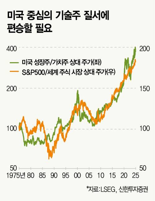 미국 주식에 장기 투자한다면 1순위는 역시 기술주다. 김성환 신한투자증권 애널리스트는 “지난 100년간 미국은 세계 최대 제조국 지위를 상실했지만 기술 헤게모니는 놓치지 않았다”며 “성장주는 미국 주식 그 자체”라고 강조했다. 그는 “기술 중심 상승 사이클이 3~4년, 중소형 성장주의 투기적 강세가 이후 1년 정도 이어졌다”며 “최근 상승세를 감안하면 3년 정도의 기술주 상승 사이클이 남았다고 판단할 수 있다”고 밝혔다. 신한투자증권이 꼽은 5대 테마는 ▲반도체 ▲AI 소프트웨어 ▲로봇 ▲우주 ▲천연가스다.