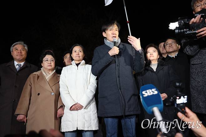 | ▲ 12.3 비상계엄이 선포된 직후인 지난 2024년 12월 4일 새벽 5시께 조국 혁신당 대표가 국회 정문 앞에서 연설을 하고 있다. |