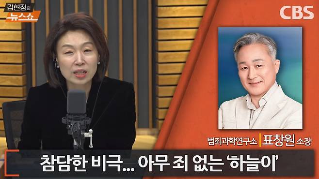 ◇ 김현정> 알겠습니다. 오늘 참 비극적인 사건 표창원 소장과 함께 이모저모를 분석해 봤습니다. 표창원 소장님 고맙습니다.