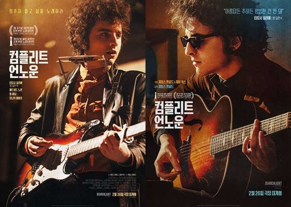 배우 티모시 살라메는 멋진 노래 솜씨까지 들려주는 등 '청년' 딜런으로 완벽히 변신했다. 영화는 제97회 아카데미 어워즈 8개 부문에 걸쳐 후보에 올랐다. <컴플리트 언노운>에는 위대한 싱어송라이터의 청년 시절 빛과 그림자가 동시에 담겨 있었다.