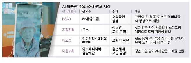 광고업계에서 인공지능(AI)을 활용한 ESG(환경·책임·투명경영) 관련 광고가 주목을 받고 있다.