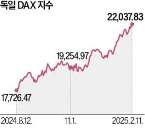 독일 내수 경기 침체에도 수출 기업 중심으로 실적이 개선돼 DAX지수는 1년 새 29.35% 올랐다.