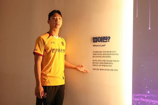- 정의로운 판단과 법치 수호를 배울 수 있는 공간인 솔로몬로파크에서 사진 촬영을 진행해 냉철한 판단력과 강인한 수비력으로 광주FC를 수호하겠다는 곽성훈 선수의 각오를 담은 의미의 사진 촬영