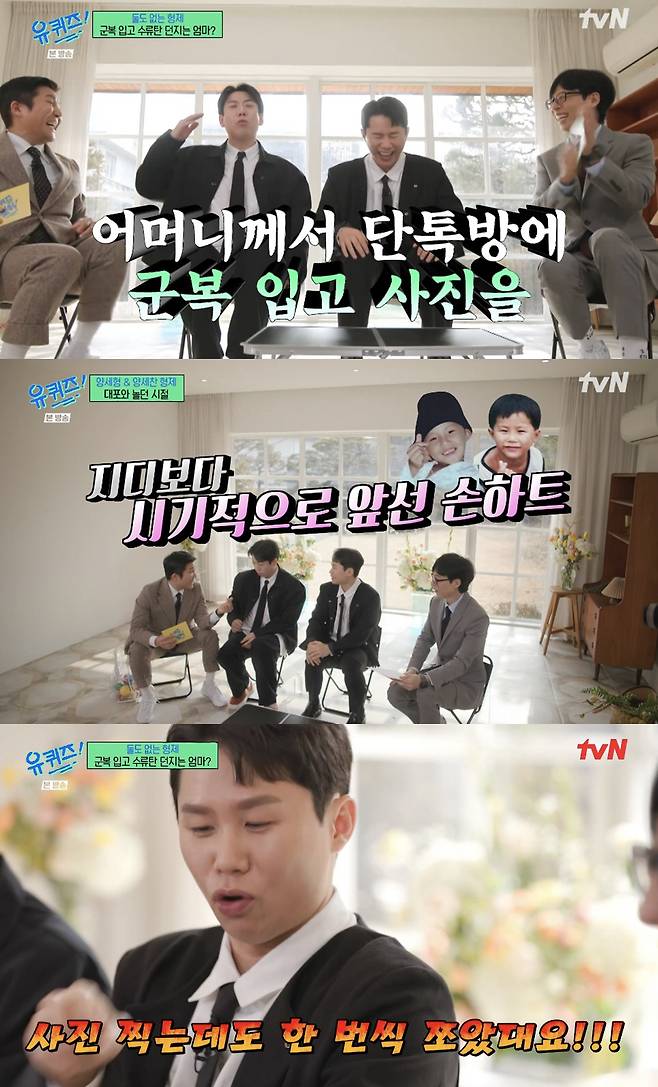 형제답게 옷까지 맞춰입고 온 두 사람. 양세찬은 "저는 지금 생각해보니 제 개그맨 생활도 어릴 때부터 형을 쫓아다녀서 형이 하는 걸 다 했던 거 같다"라 했다. 한살 터울인 형이 학교에 가면 혼자 남겨져 따라다녔고, 양세형은 "가다 보면 '꺼져'라 해도 안가고 오다가 막 숨는다. 돌아가던 뒷모습이 아직도 생각이 난다. 좀 짠했다"라고 끄덕였다.