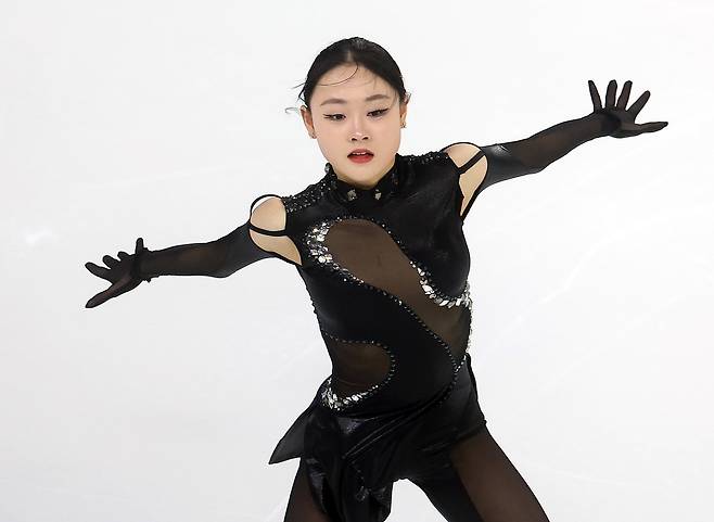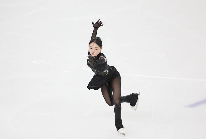 | ▲ 피겨 김채연이 12일 중국 하얼빈 헤이룽장 빙상훈련센터 다목적홀에서 열린 하얼빈 동계아시안게임 피겨 여자 싱글 쇼트프로그램에서 연기를 펼치고 있다. |