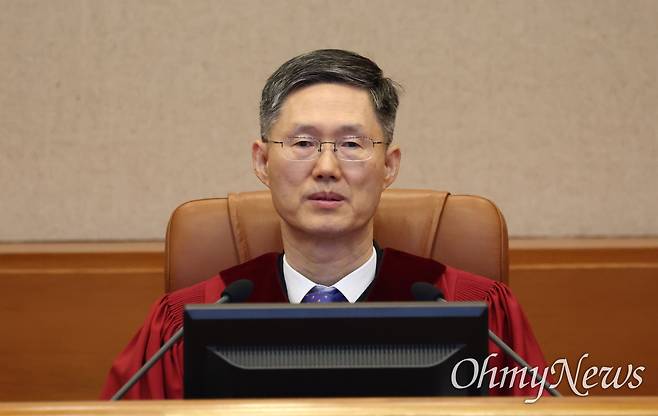| ▲ 문형배 헌법재판소장 권한대행이 13일 서울 종로구 헌법재판소에서 열린 '윤석열 대통령 탄핵심판 8차 변론'에 참석해 자리하고 있다. |
