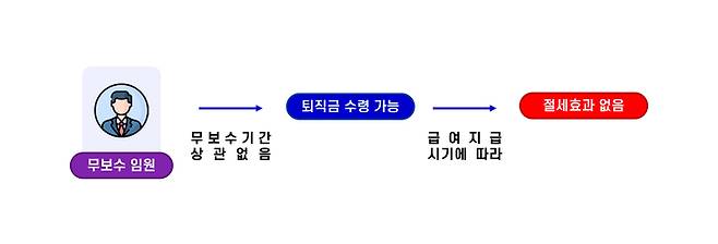 법인 설립 후 여러 이후로 임원, 특히 대표이사의 경우 무보수로 근무하는 경우가 종종 있습니다. 과연 임원이 무보수로 근무한 기간에도 퇴직금을 받을 수 있을까요? 결론부터 말씀드리면 무보수 기간에 상관없이 퇴직금은 받을 수 있습니다. 그러나 임원의 경우 소득세법(22조)에서 퇴직소득세 한도를 제한하고 있기 때문에, 무보수 기간에 따라 퇴직소득으로 인정되지 않아 절세효과가 없을 수 있습니다.