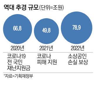 2008년 금융위기 이후 정부는 저소득층 생활 안정과 내수 진작을 위해 2009년 28조4000억원 규모의 추경을 편성했다. 이후 대규모 추경이 다시 편성된 것은 코로나19 팬데믹이 본격화된 2020년이었다. 그해에만 총 4차례에 걸쳐 66조8000억원 규모의 추경이 이뤄졌으며, 이후 2021년과 2022년에도 경기 회복을 지원하기 위해 각각 49조8000억원, 78조9000억원의 추가 재정이 투입됐다.