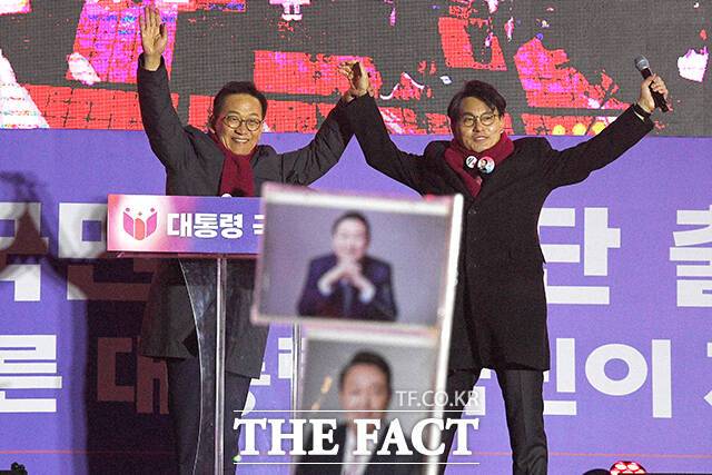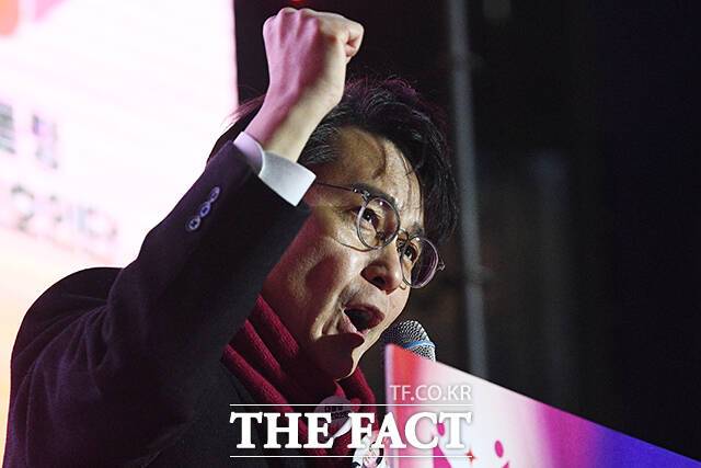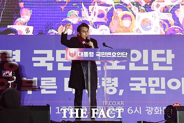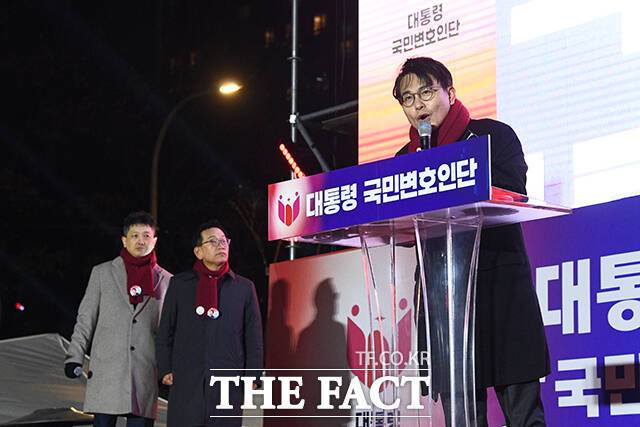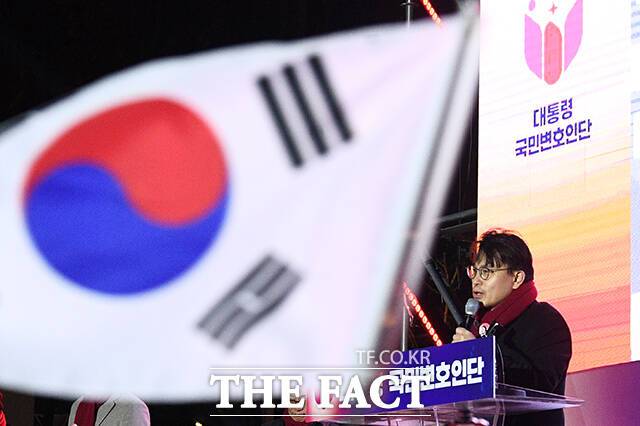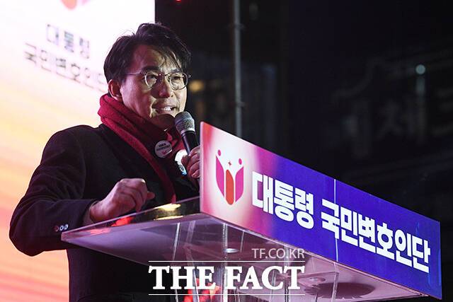 [더팩트ㅣ서예원 기자] 윤상현 국민의힘 의원이 13일 오후 서울 중구 청계광장에서 열린 윤석열 대통령 국민변호인단 출범식에서 발언하고 있다.
